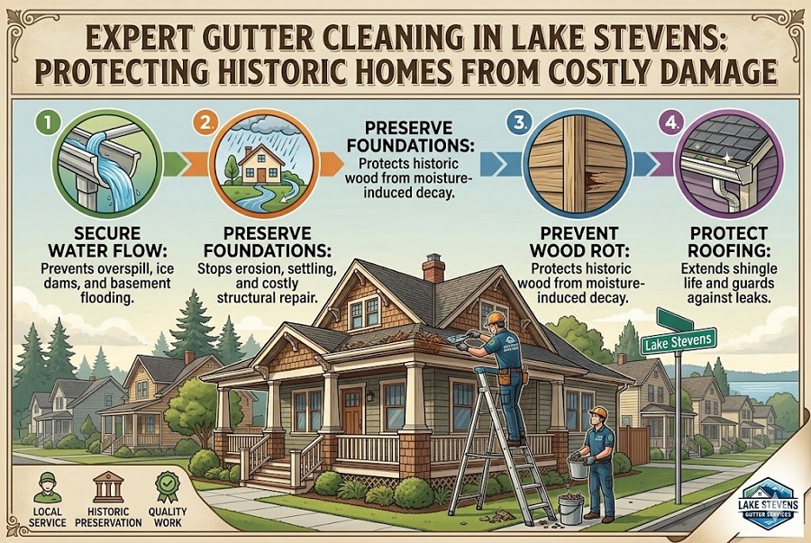 The solution is simple yet critical consistent, professional gutter cleaning in Lake Stevens designed specifically for historic properties.